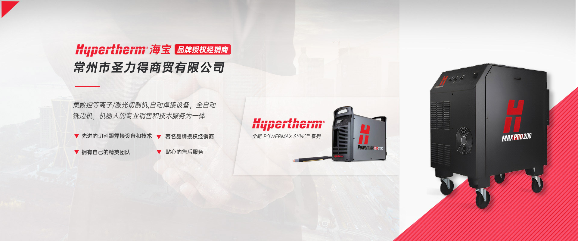 常州市圣力得商贸有限公司是一家集数控等离子/激光切割机,自动焊接设备,全自动铣边机,机器人的专业销售和技术服务为一体的公司。本公司是世界品牌Hypertherm(美国海宝)公司的授权经销商?! 」臼且恢Ъ际跷榷ā⒎裼帕肌⒏挥谐木⑼哦印9局铝τ诮庀冉那懈罡附由璞负图际踅樯芨泄幕髦圃焐毯椭斩擞没?,并为用户提供品质的产品和完善的售后服务?! 」局饕硪韵虏罚骸 ?.美国海宝Hypertherm等离子机用电源,手持电源,原装易损件及备件  2.韩国赛拉科(CERACO)铣边机,南京顶瑞自动焊接小车  3.迈誓坦(MicroStep),日本田中(TANAKA),武汉法利莱(FARLEY-LASERLAB),江苏博大品牌等离子切割机,激光切割机及维修配件。  4.美国海宝,美国飞马特,凯尔贝等原装正品易损件及配件  5.激光切割机,等离子切割机,火焰切割机升级,安装与调试及技术升级改造项目  6.机器人焊/切生产线  热忱欢迎广大用户前来询价及洽谈。